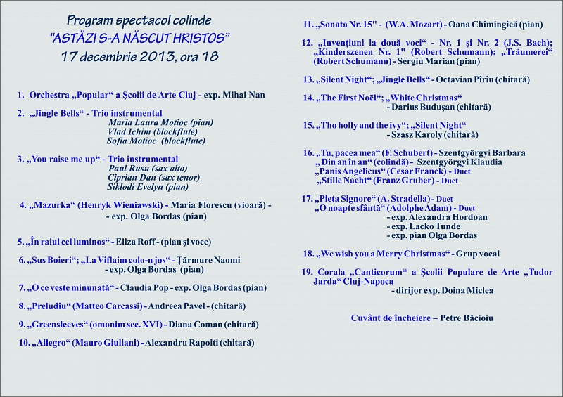 CONCERT „ASTĂZI S-A NĂSCUT HRISTOS” – 17 DECEMBRIE 2012 – ORA 18