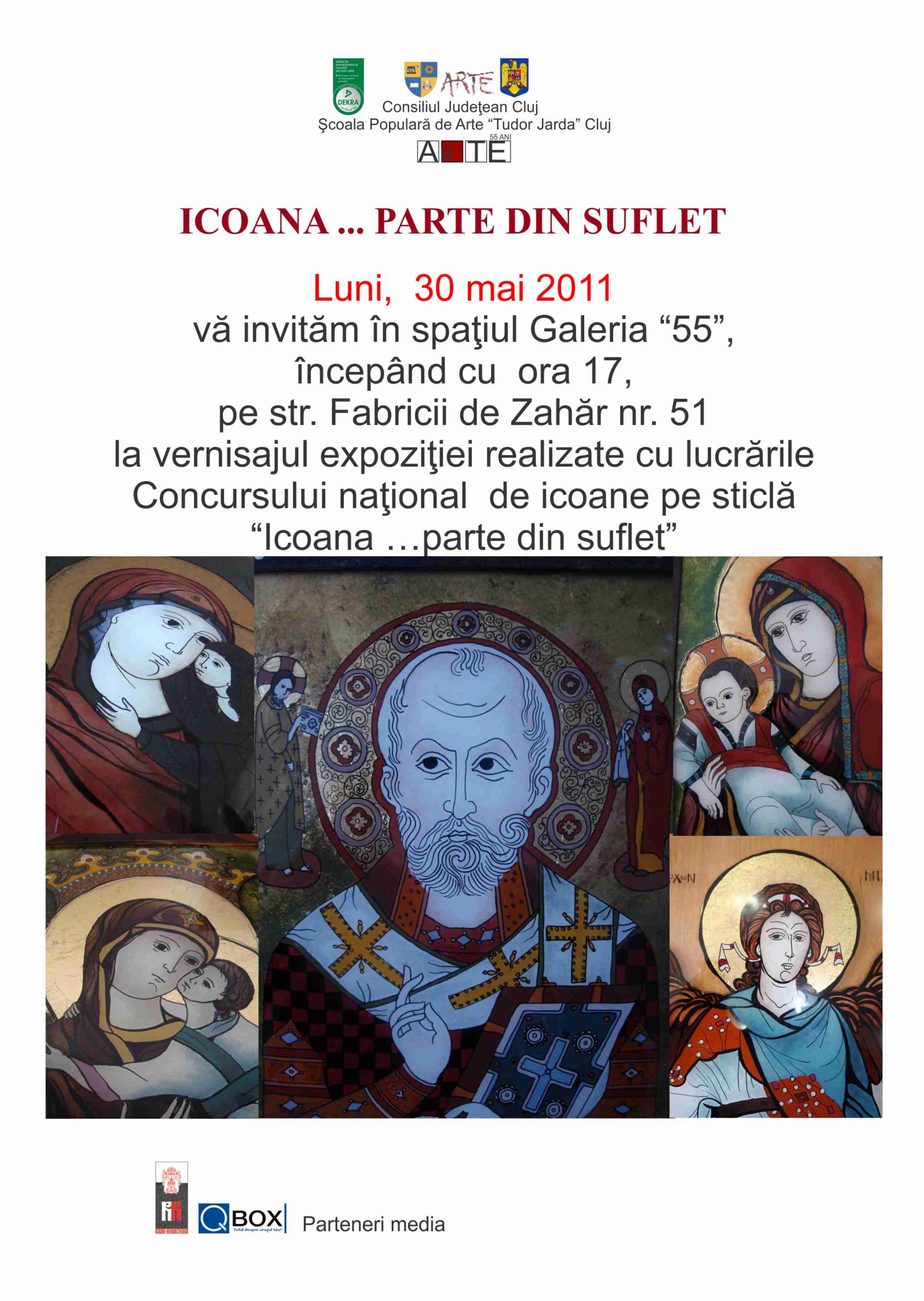 Consiliul Judeţean Cluj, Şcoala Populară de Arte „Tudor Jarda” Cluj organizează, în data de 23 mai 2010, prima ediţie a Concursului naţional de iconografie pe sticlă „Icoana…parte din suflet”. Dorim ca acest eveniment să fie o competiţie artistică ce îşi propune să descopere şi să promoveze valoarea şi frumuseţea iconografiei tradiţionale.