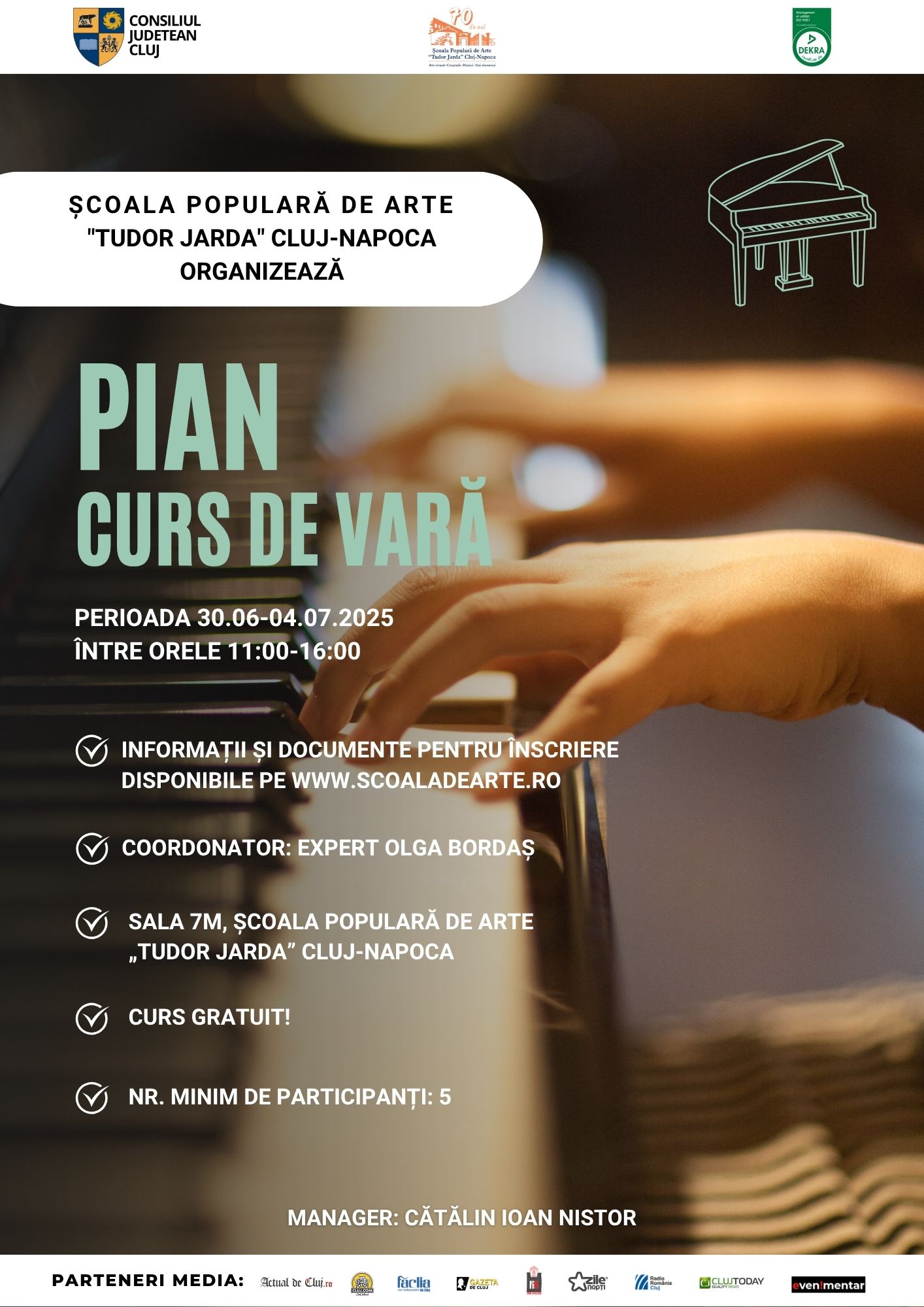 Curs de vară – PIAN – 30 IUN-4 IULIE 2025, sala 7M- expert Olga Bordaș