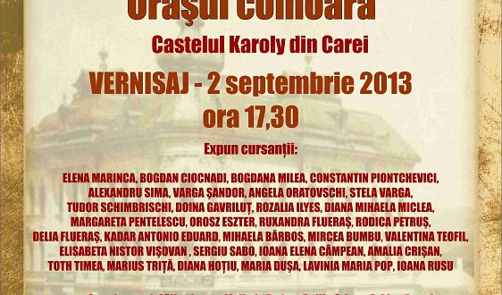 Vă aşteptăm, aşadar, în data de 2 septembrie 2013, ora 17,30 la Castelul Karoly din Carei, precum şi în data de 3 septembrie 2013, ora 17 la Galeria „Arte” din Cluj Napoca pentru a ne bucura împreună de cele două vernisaje realizate pentru sufletele şi inimile noastre.