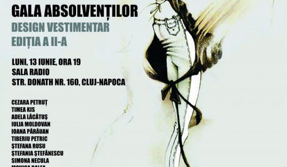 Consiliul Judeţean Cluj prin Şcoala Populară de Arte „Tudor Jarda” Cluj şi Studioul Teritorial De Radio Cluj , alături de Agenţia de Manechine Hermes Models Cluj vă invită să participaţi în data de 13 iunie 2011, ora 19, la Sala Radio (cartierul Grigorescu) la „Gala absolvenţilor de design vestimentar Tudor Jarda Cluj”. Acest eveniment îşi propune o trecere în revistă a potenţialului artistic existent în domeniul designului vestimentar şi lansarea de noi tinere talente in domeniu. Vor participa cu colecţii atât absolvenţii anilor III si IV, cât şi cursanţii anilor I şi II ai secţiei de design vestimentar a Şcolii Populare de Arte „Tudor Jarda” Cluj, secţie condusă de Monica Nechita Indolean. Acestia sunt: Timea Kis, Cezara Petruţ, Adela Lăcătuş, Moldovan Iulia, Ioana Părăuan, Tiberiu Petric, Ştefana Rusu, Şefania Ştefănescu, Simona Necula, Monica Balea, Iulia Marian, Ioana Borlea, Dana Oargă, Ana-Maria Pleşa, Oana Petuţiu şi Alin Lazăr.