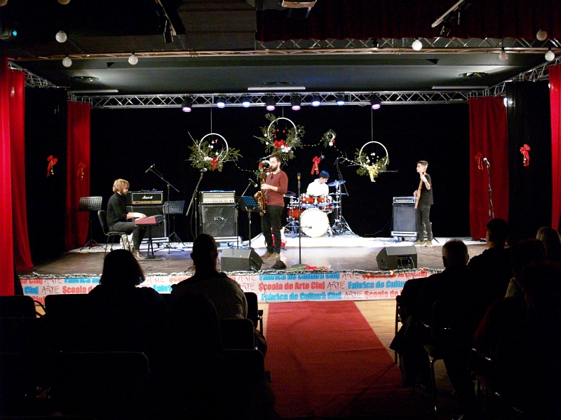Sala “Şantier” a Şcolii de Arte Cluj-Napoca a găzduit joi, 12 decembrie 2019, cea de-a VIII-a ediţie a spectacolului artistic “Seară de iarnă”, constând în momente de muzică uşoară, muzică populară, canto clasic, muzică clasică, jazz, dans modern, joc popular, oferit de experţii şi cursanţii prestigioasei instituţii de cultură şi educaţie din Cluj-Napoca. Nu însă înainte de a aduce un binemeritat omagiu şi artelor vizuale, prin inaugurarea celei de-a doua părţi a expoziţiei “Invernală”, organizată în galeriile şcolii – prima parte fiind deschisă cu circa două ore înainte, la Consiliul Judeţean Cluj – şi prin prezentarea lucrărilor, făcute de experţii secţiilor de Artă fotografică, Ceramică, Decoraţiuni interioare, Design Vestimentar, Grafică şi Pictură. Apoi a urmat o evocare făcută de managerul Vasile Corpodean, a celor 30 de ani care au trecut de la Revoluția din decembrie 1989, după care întreaga sală a păstrat câteva momente de reculegere. Iar spectacolul ce a urmat – al cărei amfitrion a fost Sorin Grecu, referentul de presă al Şcolii de Arte – a reprezentat un adevărat maraton, întinzându-se pe parcursul a peste două ore şi jumătate şi angrenând majoritatea compartimentelor artistice ale instituţiei. Acesta a debutat cu un microrecital de jazz – de mare clasă – oferit de clasa expert Onișor Rodilă şi Formația „SPA JAZZ BAND“, conţinând piesele “Billie’s Bounce”, “În oraş la Viflaem”, “Foi Deus” interpretate de Onișor Rodilă (pian), Adriana Berezovski (voce), Septimiu Moldovan (saxofon), Victor Pop (chitară bass),Vicinius Băeş (percuţie). A urmat interpretarea, de excepţie, a unei cursante a clasei de saxofon a expertului Petrică Pleşca, polivalenta Larisa Dodea, cu “All I Want for Christmas is You” (Mariah Carey), după care au încântat publicul cursanţii claselor de Chitară electrică & Percuție ritmică (instructori: George Condruz & Gabriel Petrean): George Joldeş & Vlad Ciobanu (chitară electrică) şi Vlad Pop (percuţie) cu piesa “Santa Claus is Coming”. În continuare, a sosit momentul muzicii uşoare, prin cursanţii claselor experţilor Nicoleta Todoroi & Cristina Tureanu, cu cântece de iarnă interpretate de următorii: Claudia Timoce – “Scrisoare pe zăpadă” (Mădălina Amon), Mara Kovacs – “It’s Not Christmas Without You” (Katharine McPhee),Ștefan Suciu – “Din ceruri ninge alb” (Andrei Tudor & Andreea Andrei), Andrada Hofmeister – “Underneath The Christmas Tree” (Kelly Clarkson), Cecilia Șerban – “Christmastime Again” (MercyMe). A acompaniat Formaţia „NAPOCA“ – condusă de către profesor Mihai Ghircoiaș, avându-i în componenţă pe: Mihai Ghircoiaș (pian), Larisa Dodea (chitară electrică),Gabriel Petrean (percuție), Mihai Marenciuc (chitară bass). După câteva momente de poezie din creaţia prezentatorului a urmat şi un reuşit mini-spectacol de dans modern, “Poveste de iarnă”, realizat de micuţele dansatoare de la clasa instructor Patricia Presecan, care a performat pe scenă împreună cu ele: Maria Roman, Maria Furdui, Serena Szekeli, Simina Roman, Viorica Şerban, Raluca Buburuz.