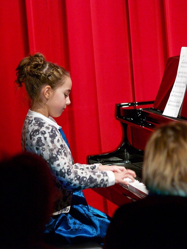 Curând de tot, Sala “Şantier” răsuna de acordurile pianului profesionist de concerte, W. Hoffmann by Bechstein, la care au cântat, succesiv, două merituoase cursante ale d-nei expert Olga Bordas: Iasmina Martin – două colinde şi Petra Damşa – “Piesă” (Karl Filtch). În ton cu atmosfera muzicii clasice au urmat cursanţii expertului Tamara Prădan: Luisa Maino – cu piesa “Tu Scendi Dalle Stelle” (Alfonso Maria De’Liguori) şi Andrei Bangău – cu “Panis Angelicus”, acompaniați la pian de către Olga Bordas. Apoi Andrei Bangău, Horaţiu Coman, Norbert Coman & Paul Sava au interpretat colinda “O noapte sfântă”, în grupul lor venind apoi şi Luisa Maino pentru a interpreta împreună, la finalul momentului lor, “We Wish You a Merry Christmas”.