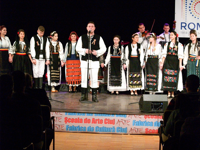 Introducerea momentului următor, concertul de muzică populară, i-a aparţinut în continuare d-lui Marius Moldovan, directorul adjunct al Şcolii de Arte Cluj, care a înmânat diplome de absolvire mai multor absolvenţi ai claselor de canto muzică populară şi joc popular, felicitându-i pe aceştia. De asemenea, până la începutul mult aşteptatului spectacol folcloric a avut loc şi prezentarea numărului 8 al revistei ilustrate MAKING OF – conţinând prezentarea activităţilor cultural-educaţionale din anul educaţional 2017 -2018 – făcută de Sorin Grecu, referentul de presă al instituţiei. A urmat, în sfârşit, o adevărată desfăşurare de forţe folclorice, aplaudată cu căldură de către public, într-un concert realizat deopotrivă de experţi, solişti vocali şi cursanţi ai Taberei muzicale de toamnă, 2018. Aşadar, recitalul a fost susţinut de către următorii protagonişti, cu piesele: grup vocal – Hai să-ntindem Hora mare, Ovidiu Goia (clasa taragot expert Petrică Pleşca) – M-o făcut mama ficior (ţarină), Simona Bădulescu (clasa expert Claudiu Ciotleuş) – Lasă Doamne dragostea, Cătălin Lazăr (clasa expert Ana Strîmturean) – Lasă Doamne vremea bună, expert Ioana Petran – Câte doruri am purtat, expert Felix Gălan – S-o trudit părinții mei, expert Claudiu Ciotleuş – Pân’ la 40 de ani, expert Ana Strîmturean – La cetera din lemn ales (Năsăud), grup vocal – Noi suntem români. A acompaniat, cu binecunonoscuta-i virtuozitate, Taraful VATRĂ DE DOR, condus de Mihai Moroşan (cu Mihai Moroşan – ţambal, Ionică Răzăilă-acordeon, Marius Moldovan – vioară, Ruben Bolea – contrabas, Viorel Negrea-braci, Vasile Chiorean-taragot). Iar momentul folcloric s-a încheiat cu un dans popular susţinut de Ansamblul Cununa Someşană (Floreşti-Cluj), îndrumător expert Dinu Ban.